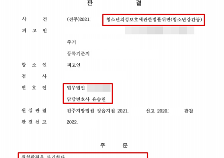 [아청법변호사 성공사례] 아청법 위반 청소년강간 집행유예 선고